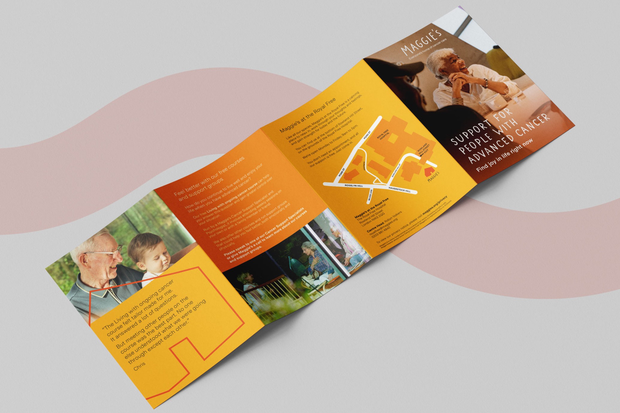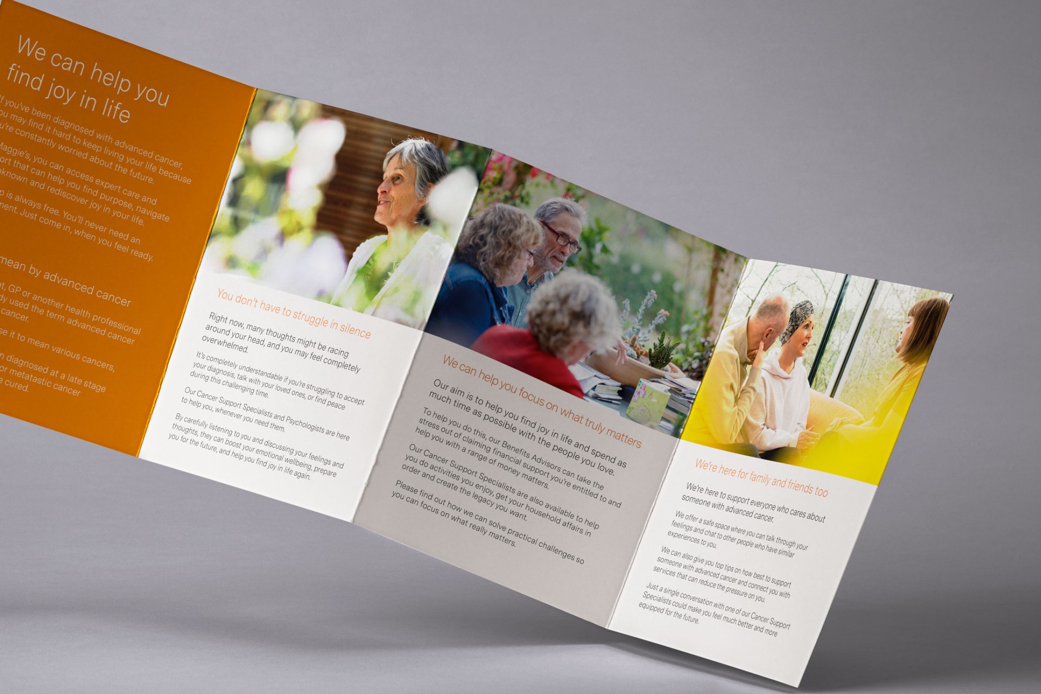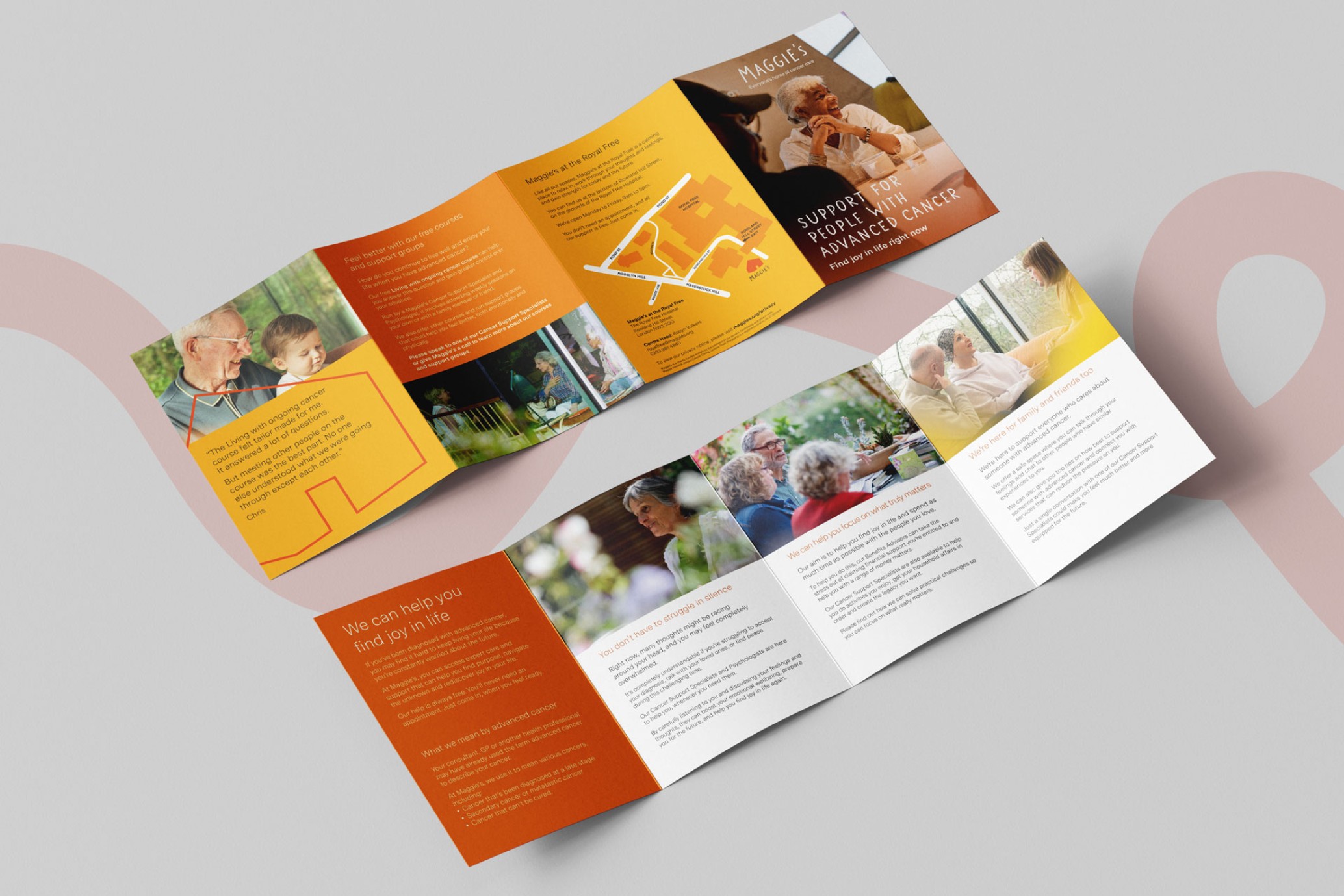 We were asked to help develop key messaging around advanced cancer to explain what Maggie’s offers, with the goal of testing it for use in communications and in their centres. This included creating a leaflet aimed at people with cancer, as well as their friends and families, to outline the support Maggie’s provides in this area. Additionally, we were tasked with designing social media assets featuring the key messages around advanced cancer to help raise awareness and support their outreach efforts.