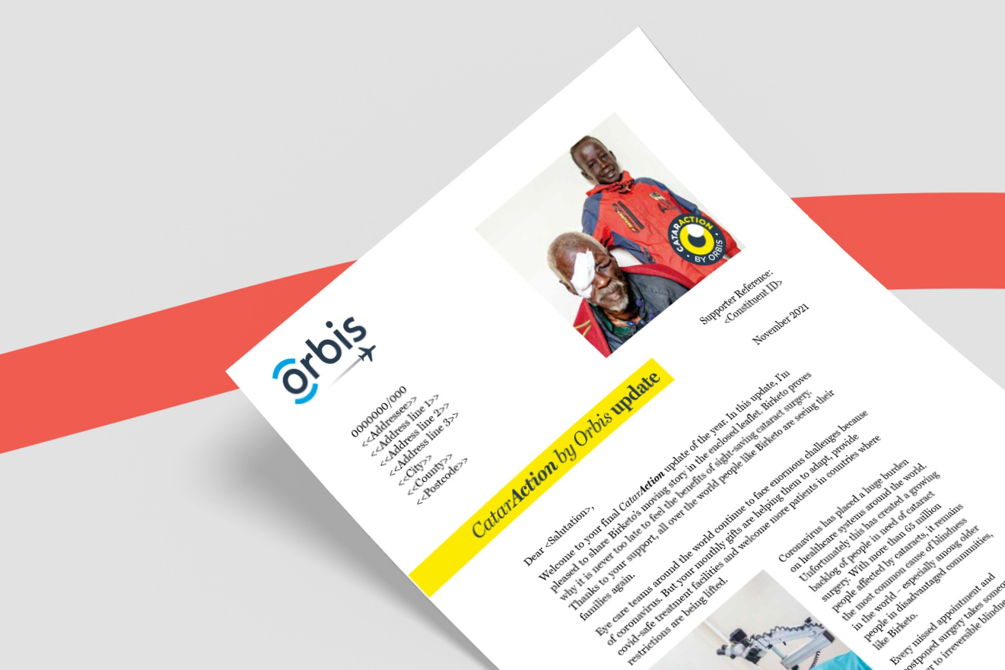 Orbis approached us to create an update for CatarAction supporters, a group of individuals who regularly donate to the charity’s cataract-focused work. The update was to be a non-appeal engagement piece, designed to highlight how their contributions were being used, without directly asking for more funds. The aim was to reassure supporters of their vital role and the impact of their continued donations. The piece was to be distributed alongside Orbis’s newsletter, with an emphasis on creating a format that would feel fresh and meaningful.