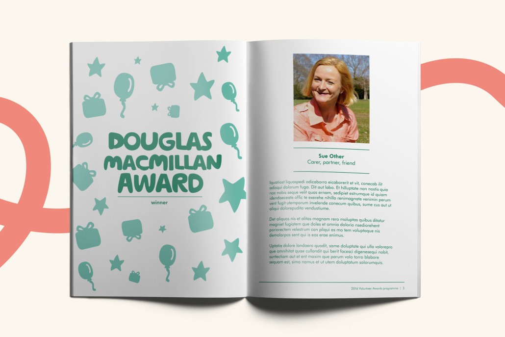 Craft a brand identity for Macmillan's Annual Volunteer Conference and Awards, seamlessly integrating with established brand guidelines. Building on past successes, our approach ensured a fresh and innovative appearance, maintaining continuity while introducing new elements for an engaging and contemporary feel.