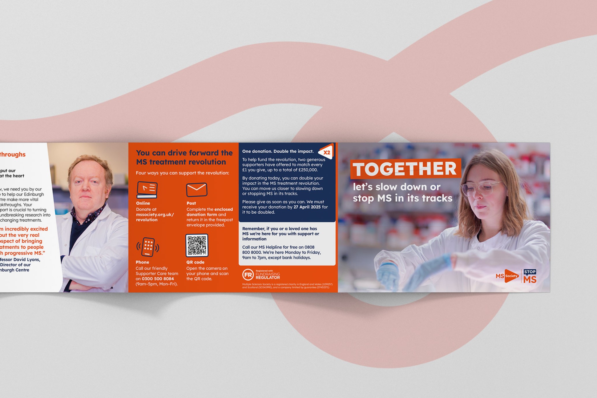We were asked to create an integrated cash appeal across direct mail and digital channels, focused on the Stop MS Appeal and MS research. As 2025 marked the final year of the Stop MS Appeal—and Spring was the first appeal of the year—this campaign needed to be as impactful as possible, with a significant fundraising target. To support this, a pot of matched funding had been secured to encourage greater giving, particularly from the individual giving audience.