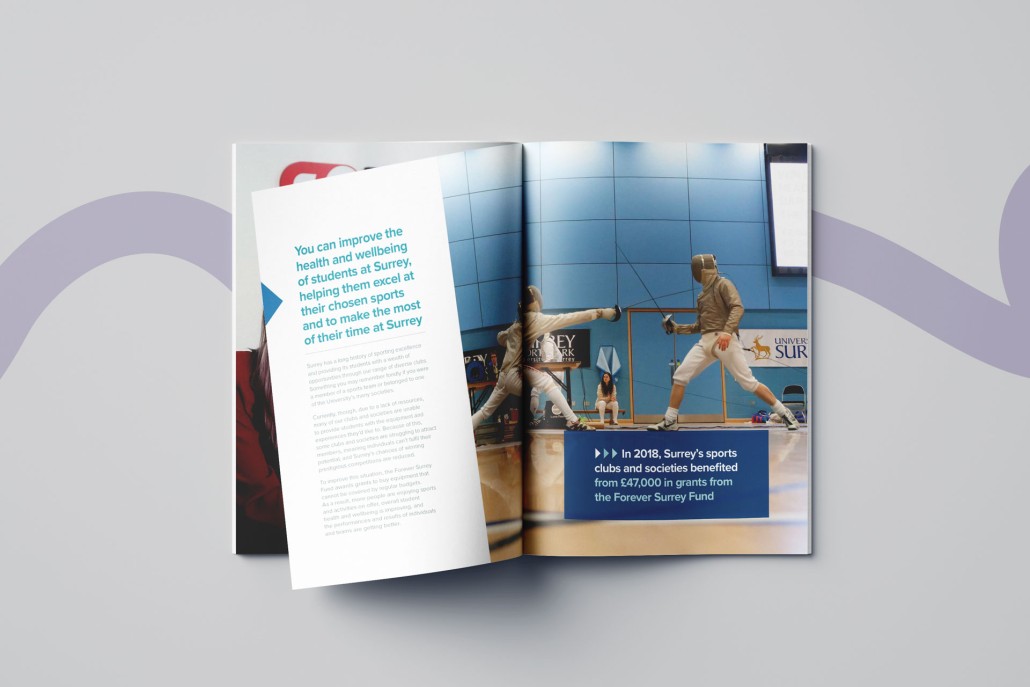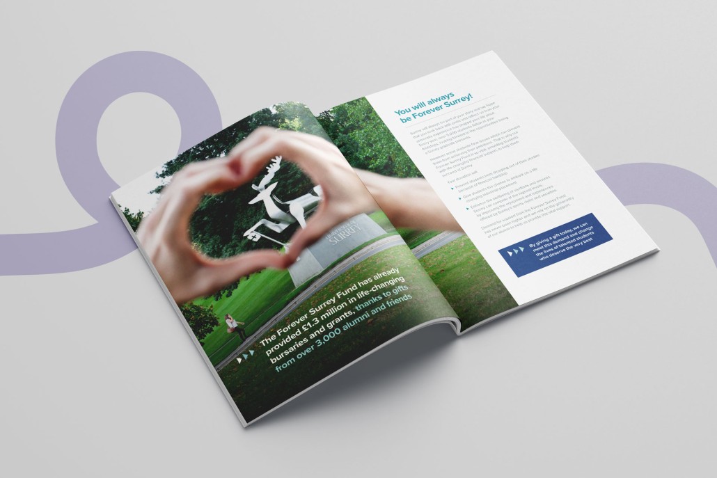 Help develop materials for the launch of a new campaign called Forever Surrey. The campaign asked alumni to donate to three causes: